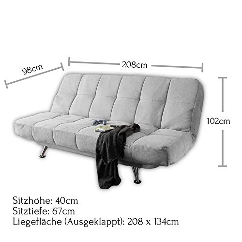 Stella Trading Ikar - Divano letto in microfibra effetto scamosciato, colore 01 argento, 208 x 102 x 98 cm