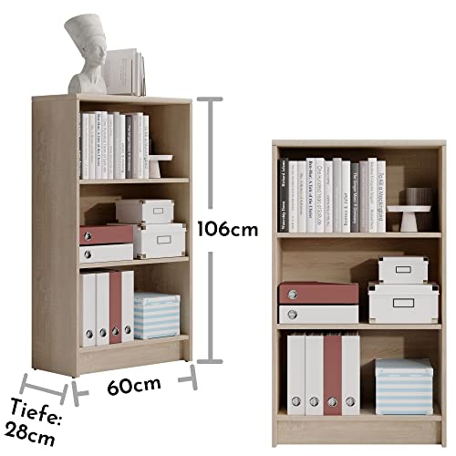 Stella Trading Lilly Effetto Quercia - Libreria Moderna con 3 Scomparti Aperti - Versatile scaffale da Ufficio con Ampio Spazio, Legno ingegnerizzato, Rovere Sonoma, 60 x 106 x 28 cm