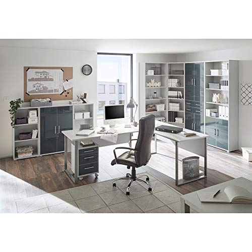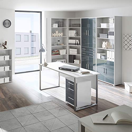Design moderno: il design grigio chiaro consente all'armadio di adattarsi elegantemente in qualsiasi ufficio. La parte anteriore in vetro laccato con grafite e le maniglie in alluminio completano il quadro complessivo