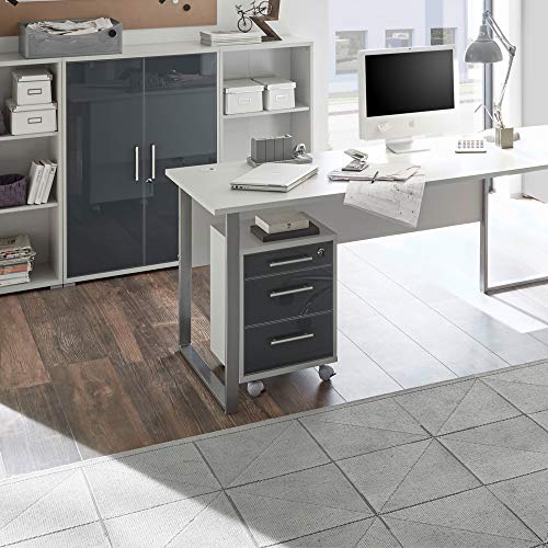 Stella Trading Office Lux-Cassettiera con rotelle con Serratura, Grigio con Frontale in Vetro Laccato Grafite, Mobile da Ufficio con 3 cassetti, Set Completo, Legno ingegnerizzato