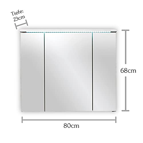 Stella Trading Splash-Armadietto da Bagno con Specchio e Illuminazione a LED in Bianco Lucido, con Ampio Spazio, Legno, 80 x 68 x 23 cm