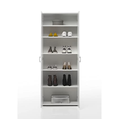 Stella Trading Talent - Scarpiera in Legno con 2 Ante e 5 Ripiani, 70 x 176 x 34 cm, Colore: Bianco