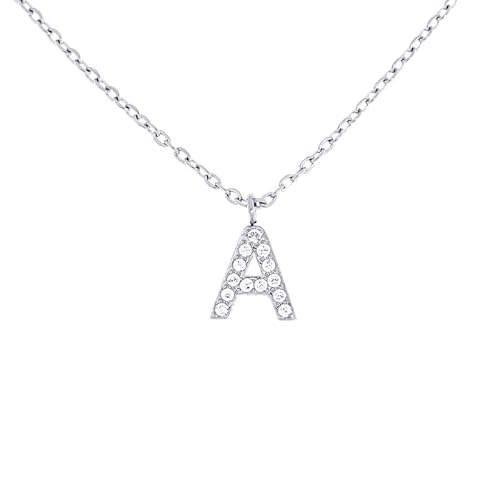 Stellazeta Collana Donna con Iniziale A in acciaio color argento con strass, Catenina con Ciondolo Lettera in Cristalli Luminosi, Collanina girocollo ragazza