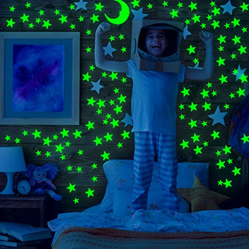 【Materiale di alta qualità】 Gli adesivi con stelle che si illuminano al buio sono realizzati in plastica di alta qualità, non tossica e rispettosa dell'ambiente, non danneggeranno la salute del tuo bambino, hanno anche un'eccellente forza adesiva e non sono facili da staccare, nota: è necessario illuminarlo con una luce per 10-15 minuti prima che l'uso brilli