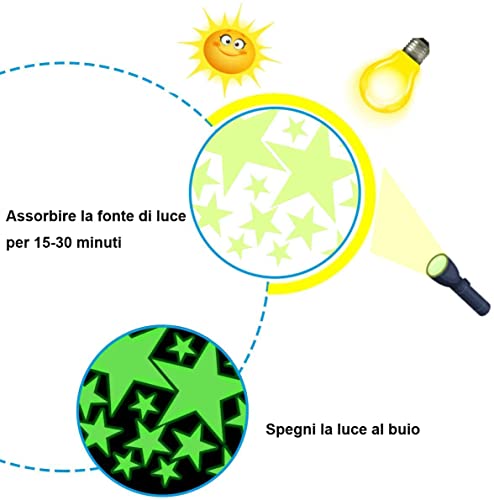Stelle Fluorescenti Adesive Soffitto, Adesivi da Parete Fluorescenti Stelle Luna Puntini Fluorescenti, Autoadesivo Luminoso Decorazione per Soggiorno Cameretta dei Bambini (445 pcs)