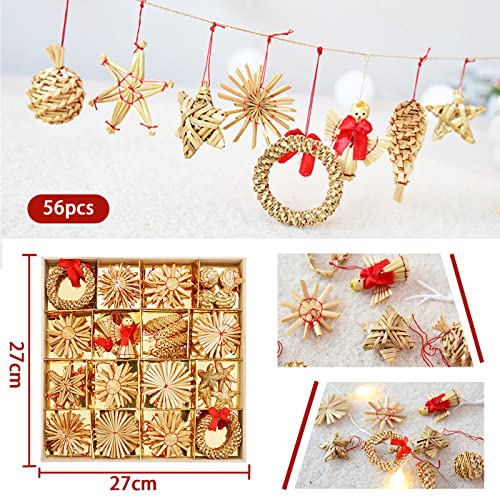 Set di Stelle in Paglia da 56 Pezzi, Ornamenti per Alberi di Natale in Paglia, Ornamenti di Paglia per Alberi - Ornamenti per Alberi di Natale in Materiale Naturalele
