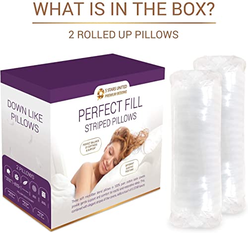 5 stelle unito letto cuscini Sleeping - 2-pack - Mid Loft - Soft Fiber fill - anallergico - Stripe cotone Covers - migliore alternativa alla piuma d' oca letto - Fit a standard federe Queen 20" x 30" White/ Golden Piping