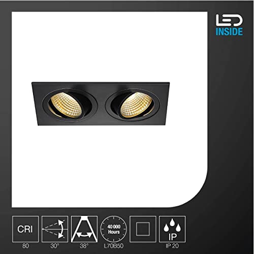 SLV New TRIA 2 Set LED, Stelo, faretto soffitto, Lampada a Incasso, Illuminazione di Interni / 2700K 14W 1160lm Nero 38 Gradi 14 W