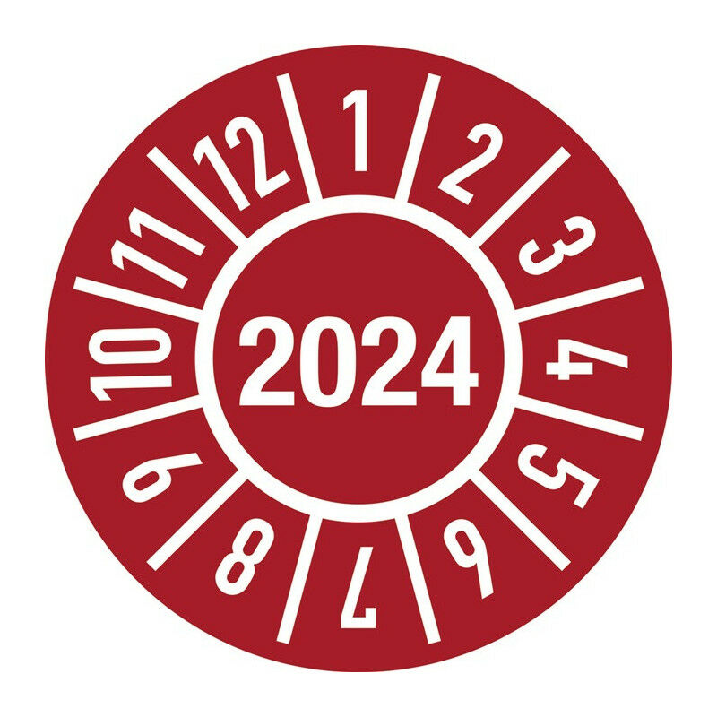 Film autoadesivo - ideale per contrassegnare tutti gli intervalli di manutenzione a breve e medio termine - facile riconoscimento della data di ispezione - PU = 100 pezzi in un sacchetto Ulteriori caratteristiche tecniche: - Versione: Anno 2024 con mesi - Confezione: Sacchetto