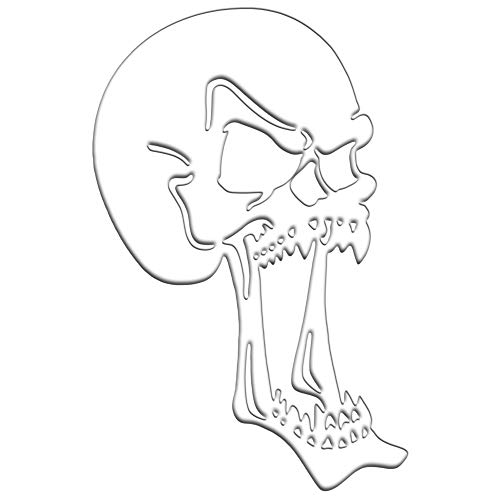 La confezione contiene n.1 stencil raffigurante un impressionante teschio, realizzato in flessibile e robusto mylar di altissima qualità, tagliato con la precisione del laser! Dimensioni: 11 x 19.5 cm