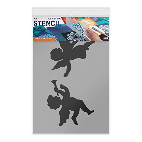 Stencil di angeli di Natale - cartone o plastica - A5 14,8 x 21 cm - La larghezza del ritaglio è di 18,5 cm - pittura, Natale, artigianato, muro, stencil mobili - riutilizzabili per bambini (Plastica)