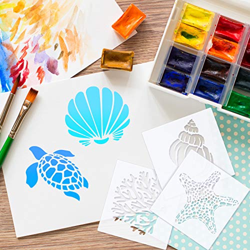 Set di 8 Stencil di Animali Marini Modello Stencil per Pittura di Mare Riutilizzabile, Tartaruga, Stella Marina, Conchiglia, Cavalluccio, Corallo, Conchiglia, 5,1 x 5,1 Pollici