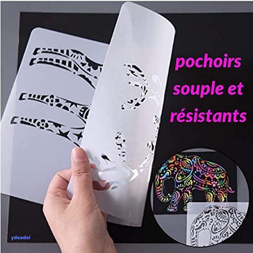 Facile da usare Gli stencil per disegnare gli animali sono adatti per colorare su gratta e vinci neri o su quaderni. Puoi colorare le parti cave dello stencil con un colore diverso. I modelli sono adatti per le vostre biro e matite colorate, o per la pittura. Mettete lo stencil su un cartoncino nero, con una matita di bambù, grattate nei fori dello stencil e scoprirete i colori dell'arcobaleno.