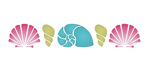 Stencil per bordi a conchiglia, 33 x 7,5 cm (M) - Riutilizzabile con conchiglie marine marine e barriera corallina
