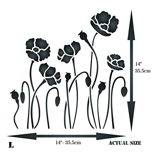 Stencil da campo di papavero, 35,5 x 35,5 cm (L) - Stencil con bordo fiorito