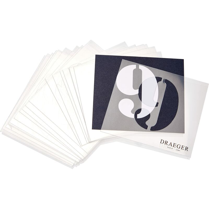 Set di 19 stencil in plastica rappresentante 10 cifre e diversi segni di punteggiatura