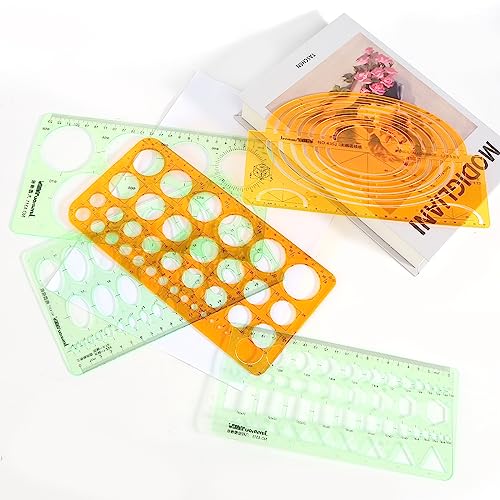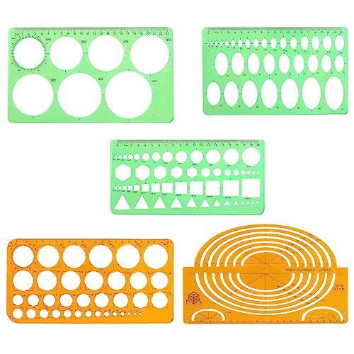 Contenuto della confezione: include 2 righelli rotondi, 2 righelli ovali, 1 righello da disegno geometrico, una varietà di forme per aiutarti a svolgere facilmente i tuoi lavori tecnici.