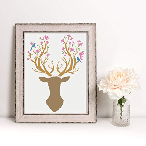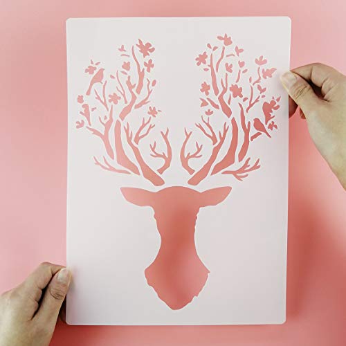 Stencil di corna di renna di fiori foresta, 3 pezzi corna di cervo fattoria riutilizzabile modello formato A4 per la pittura su legno tessuto tela parete progetti artistici fai da te 29,7x21 cm