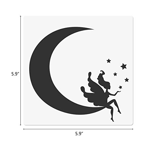 5 stencil dal design unico. Questo set di modelli Crescents Moon include 5 pezzi in totale, gatto luna, fata luna, coda di pesce, farfalla luna, pesce lunare. Ogni disegno è diverso, puoi decorare tutto il necessario.
