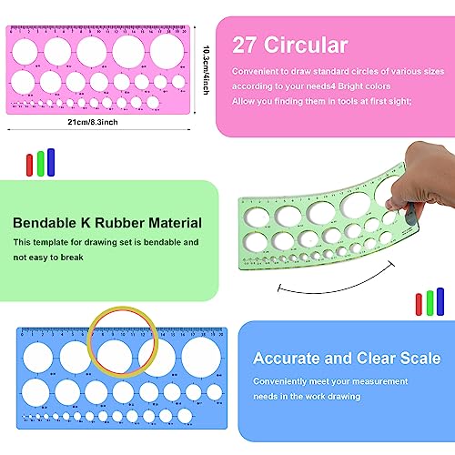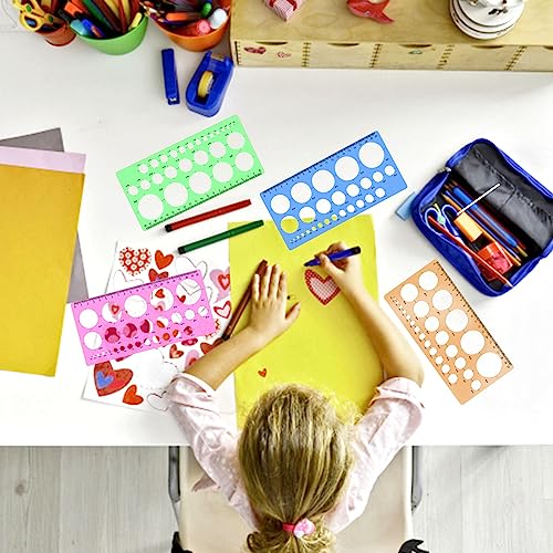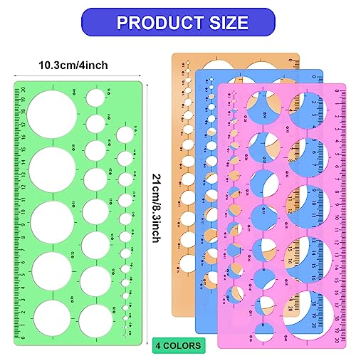 4 stencil per disegnare cerchi colorati, strumenti da disegno, righelli, scala CM, modelli di misurazione digitale, righelli per ufficio, scuola, edifici, casseforme, disegni