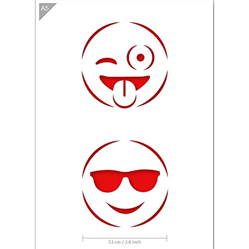 QBIX Stencil emoji - Wink Emoji - Cool Emoji - Stencil di emoticon - Formato A5 - Stencil riutilizzabile per bambini fai-da-te riutilizzabile per pittura, cottura, artigianato, parete, mobili