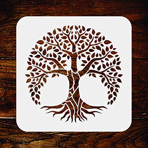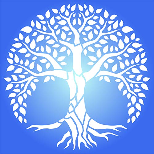 Stencil a forma di albero della vita, 35,5 x 35,5 cm (L) - Stencil da parete con albero del mondo mandala sacro