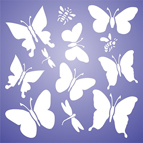 Stencil a forma di farfalla, riutilizzabile, motivo: libellule, farfalle, api large