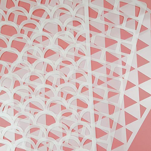 【6 stencil geometrici dal design unico】 - Stencil fantastici e assolutamente unici, questo set di modelli geometrici include 6 pezzi che ripetono il motivo in totale include onda, nido d'ape, squama di pesce, frecce, mattoni, triangoli.