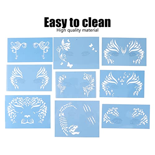 Kit di Stencil per il Viso, Grandi Stencil Riutilizzabili per Dipingere il Viso per Bambini, Stencil per Tatuaggi con 9 Pezzi, Trucco per Halloween