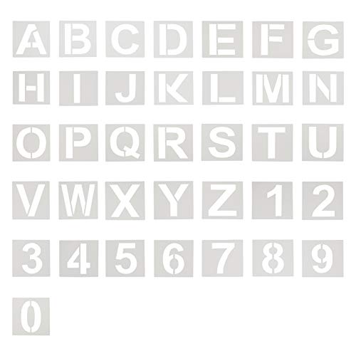 Set di stencil per lettere e numeri, 74 mm di altezza, riutilizzabile, modello alfabeto, in plastica Mylar per imparare la pittura fai da te