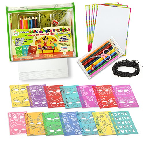 Set Stencil Maschera Grande - 106 Pezzi Kit Disegno Stencil by StenzTime | Ideale Kit Educativo e Creatività | Stencil Maschere| Stencil Lettere | Stencil Animali