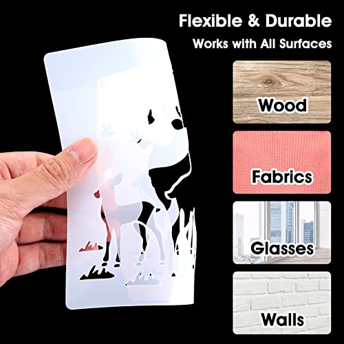 【Durevole da usare】: questi stencil con motivo cervo sono realizzati in mylar di qualità, questi modelli sono tagliati al laser su mylar spesso, flessibili ma durevoli, comodi da pulire dopo l'uso, a lungo termine da applicare in diversi progetti.