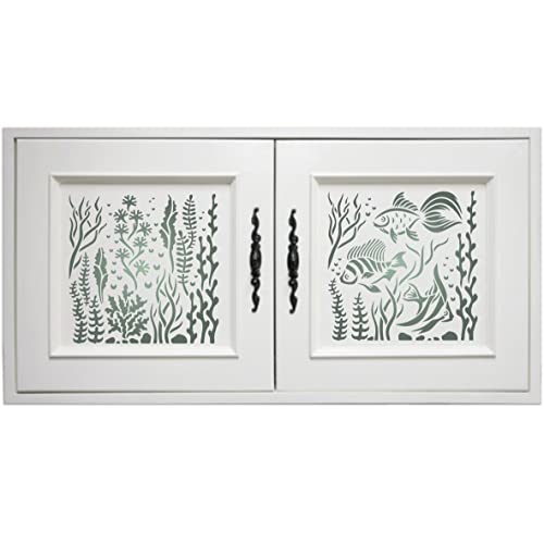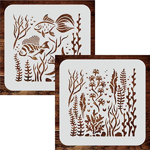 2 stencil Ocean Stencil, 2 pezzi / 16,5 x 16,5 cm (M) - Utilizzare alghe di pesce a strati per aggiungere texture e design a sfondi misti per modelli di pittura