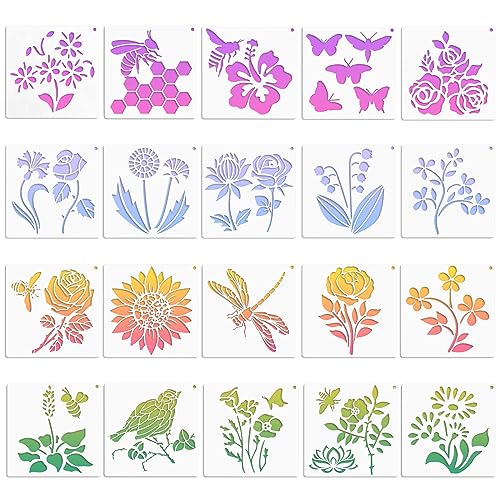 Ampia quantità: ci sono un totale di 20 stencil con diversi stili di fiori e piante, oltre a fiori e piante, ci sono anche farfalle, api, uccelli e libellule per rendere le tue immagini più esigenti. È anche possibile combinare gli stencil a piacimento perché ci sono abbastanza motivi per soddisfare le diverse esigenze di pittura.