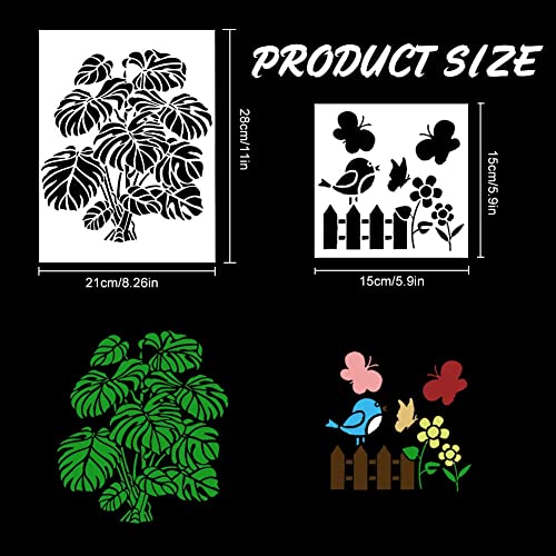 ✦✦Cosa ricevi: questo pacchetto di stencil pittura per la pittura include 12 pezzi di motivi diversi, 4 stencil di farfalle, 4 stencil di foglie e 4 stencil di fiori. La dimensione di ogni stencil è 15 * 15