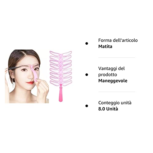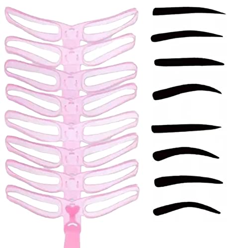 8 stencil per sopracciglia per principianti, riutilizzabili, fai da te, per 3 minuti di trucco (rosa)