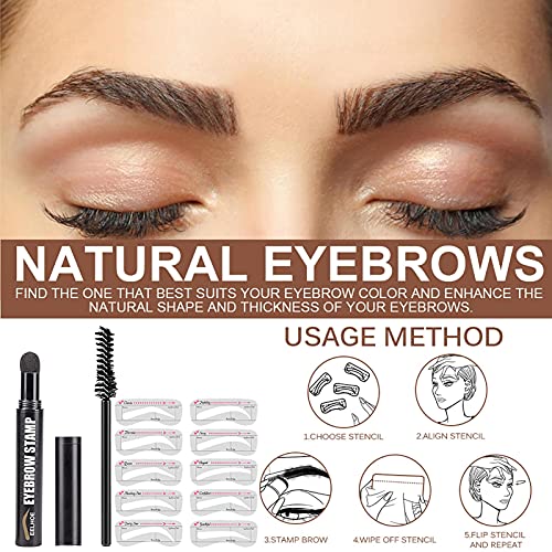 Set di Stencil per Sopracciglia Kit Professionale per Modellare Le Sopracciglia Trucco Impermeabile per Sopracciglia, 10 Modelli Diversi, Include Stick E Pennello per Cipria - Marrone