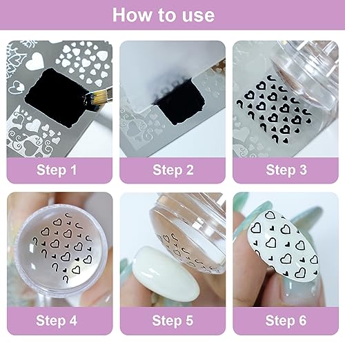 【Facile da Usare】Basta applicare una quantità adeguata di smalto per unghie sullo stencil per nail art, raschiare la colla in eccesso con un raschietto, premere il timbro trasparente sullo stencil per nail art, dopo che il motivo è stato stampato sul timbro, puoi farlo stampa il motivo sulle tue unghie. L'operazione è semplice e conveniente, adatta a professionisti e amatori che amano la nail art.