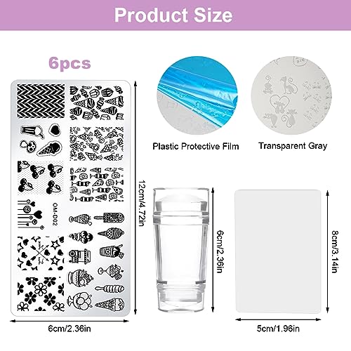 【Contenuto della Confezione】Riceverai 6 pezzi di timbri unghie nail art, 1 timbro per nail art trasparente e 1 raschietto, la dimensione di nail art stamping plates è: 12x6 cm / 4,72x2,36 pollici, puoi usarlo per crea un design unico per nail art, questi strumenti completi sono sufficienti per soddisfare le tue esigenze quotidiane di nail art fai-da-te.