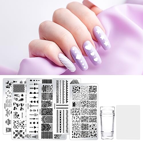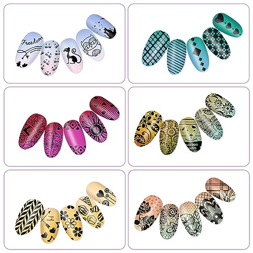 【Modelli Diversi】Kit timbro unghie nail art ha una varietà di modelli squisiti con diversi elementi di stile, come: animali, pizzi, fiori, foglie, cuori, stelle, luna, linee irregolari, gelati, ecc., un grande numero di modelli di nail art tra cui scegliere, consentendo di creare combinazioni illimitate di disegni delle unghie.