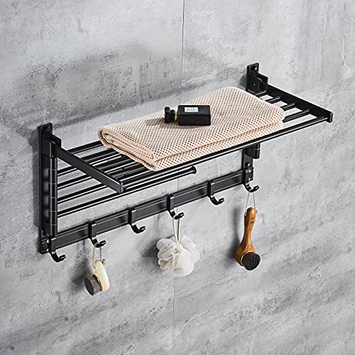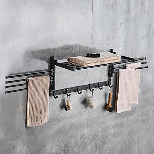 Stendibiancheria da parete con ganci e bracci girevoli, salvaspazio in metallo, a 7 bracci, in alluminio spaziale (nero)