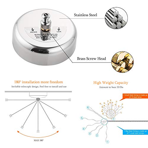 Uso flessibile: il filo da bucato regolabile può muoversi liberamente di 180 °. Puoi attaccarli in modo flessibile ovunque. Il design regolabile consente di regolare la lunghezza necessaria in base alle dimensioni della stanza.
