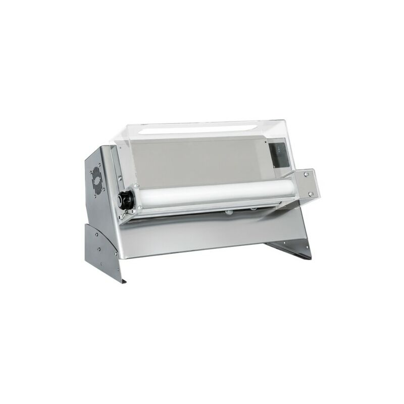 Codice RS2924 - Stendipizza modello PF-DMA500/1, dimensioni cm. 65x34.5x43 (lxpxh), 230 volt, 250 watt, Hp 0.33, peso pasta gr. 210-700, diametro pizza cm. 26-45. La dilaminatrice non necessita di personale specializzato e consente una grande economia di tempo. Realizzata per risolvere dei problemi di formatura dei dischi per la preparazione di pizze, pane, focacce, tortine, ecc. La macchina lavora a freddo, senza alterare le caratteristiche della pasta. Pedale elettrico di serie.