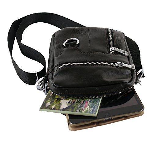 DESIGN EXQUSIVE E DISEGNO MULTIFUNZIONALE: 2 chiusure a tasca con chiusura a cerniera che possono mettere il tuo cellulare, portafogli e altri oggetti quotidiani, 1 tasca con cerniera posteriore che può mettere il tuo portafoglio o portachiavi corto, 1 tasca con cerniera frontale con una piccola tasca con zip Si può mettere la tua carta su di esso o piccola cosa in esso.