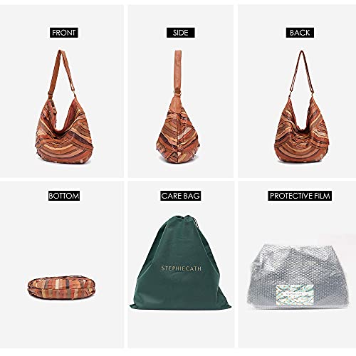 STEPHIECATH - Borsa a tracolla da donna, con tracolla lunga, patchwork e pelle di agnello, marrone chiaro, Large