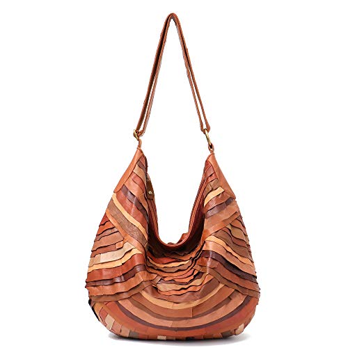 Stile unico vintage: la speciale lavorazione a mano con opere d'arte per piccoli pezzi di pelle mista colorata unita rende la borsa unica per ciascuno, e la morbida metrail in pelle crea una forma casual e morbida. È possibile portare a spalla o regolare la cintura per la tracolla, l'appeal di questa borsa vintage dona un tocco elegante a qualsiasi look, e aggiunge un tocco sottile al guardaroba di una ragazza.