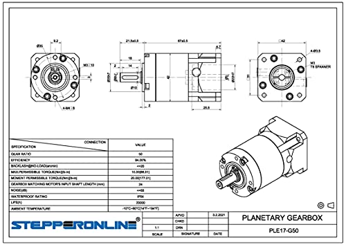 STEPPERONLINE PLE serie epicicloidale Rapporto di ingranaggi 50:1 Gioco 20 arc-min per Nema 17 Stepper Motor