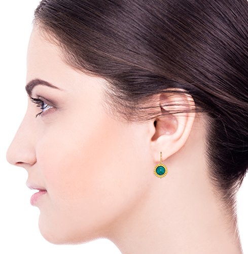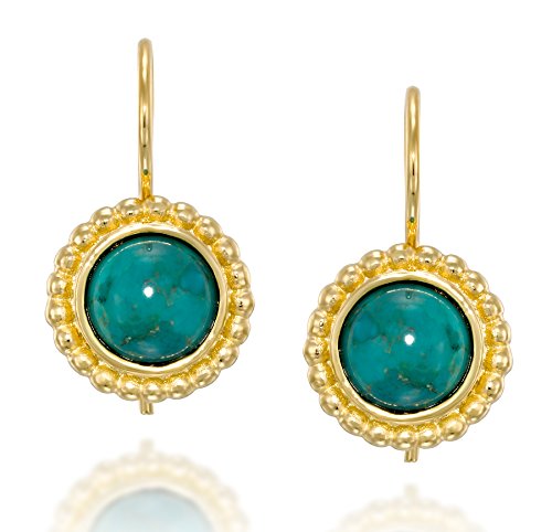 Stera Jewelry - Orecchini rotondi in argento placcato oro 14 k, con turchese compresso da 8 mm, con retro sicuro