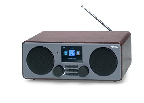 Xoro DAB 600 IR V3 Stereo Internet DAB+/UKW Radio internet con WLAN, 2 x 5 Watt RMS, USB 2.0, controllo app, Bluetooth, Spotify Connect, AUX, sveglia, stazione meteo, incluso FB marrone/grigio