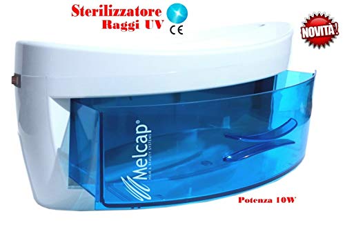 Sterilizzatore a raggi UV professionale per disinfettare utensili in acciao. Questo sterilizzatore riesce a distruggere i batteri senza ricorrere all uso di sostanze chimiche dannose per la nostra salute. Esso può essere usato in diversi settori come: barbieri, estetista, parrucchieri, ecc... La lampada germicida a raggi ultravioletti è in grado di distruggere in breve tempo qualunque micro organismo. La luce UV si spegne automaticamente all'apertura dello sportello.